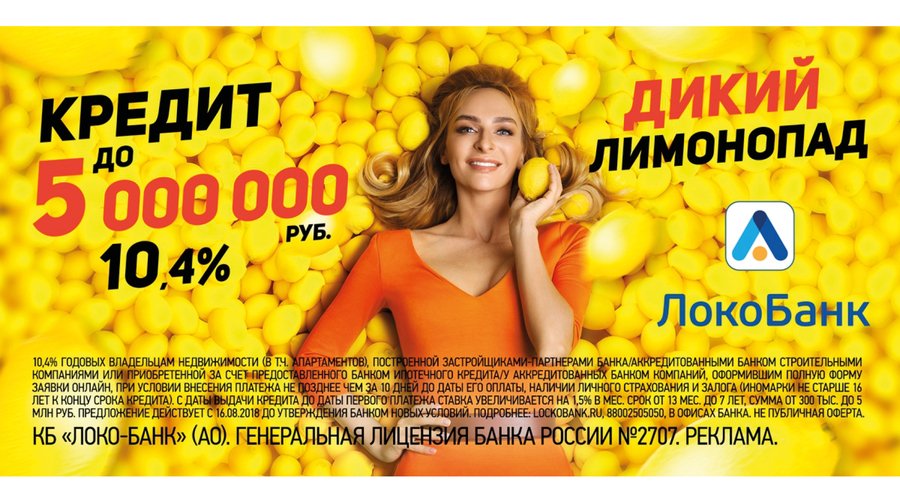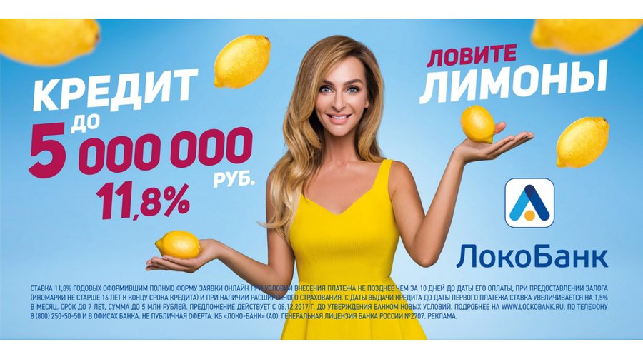 Локо-Банк. Рекламная кампания с Екатериной Варнавой «Лимоны». // Sostav.ru. — 2018. — URL: https://www.sostav.ru/publication/ekaterinu-varnavu-zasypalo-limonami-v-reklame-loko-banka-34192.html (дата обращения: 19.10.2025).