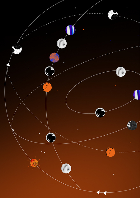 Имиджевый интерактивный веб-плакат космического адаптационного центра переселенцев JET LAG, предназначенный для изучения новой галактики.