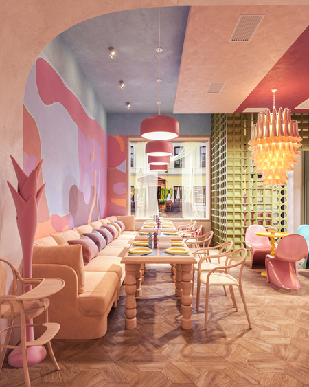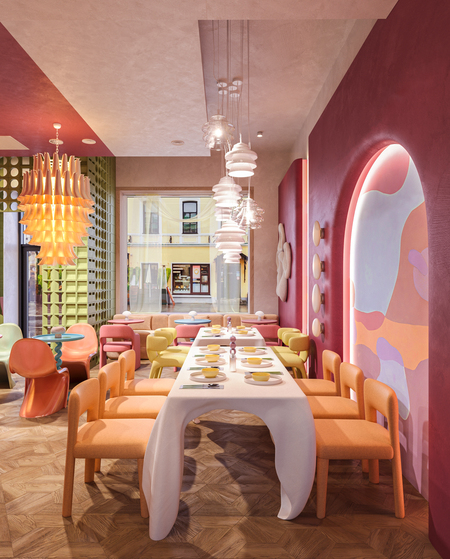 Кефир — это не просто продукт, а культурный код заботы, здоровья и натуральности, знакомый каждому с детства. Его природа, основанная на ферментации, становится метафорой мягкой трансформации: из молока рождается новое качество, а традиция обретает современное звучание. Ресторан задуман как арт-пространство, где соединяются гастрономия, чувственный дизайн и философия заботы о человеке. Белый цвет кефира символизирует гармонию, объединяя в себе все природные оттенки. Концепция интерьера раскрывает идею живой среды, похожей на цветущее поле, где рождается вкус и энергия, превращая привычное в новый чувственный опыт.