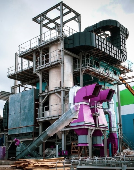 Описание: В рамках проекта «Модернизация и расширение производственных мощностей ООО „Лузалес“ возведена тепловая электростанция переработки отходов деревообрабатывающего производства: коры и щепы.
