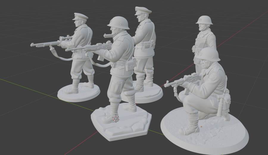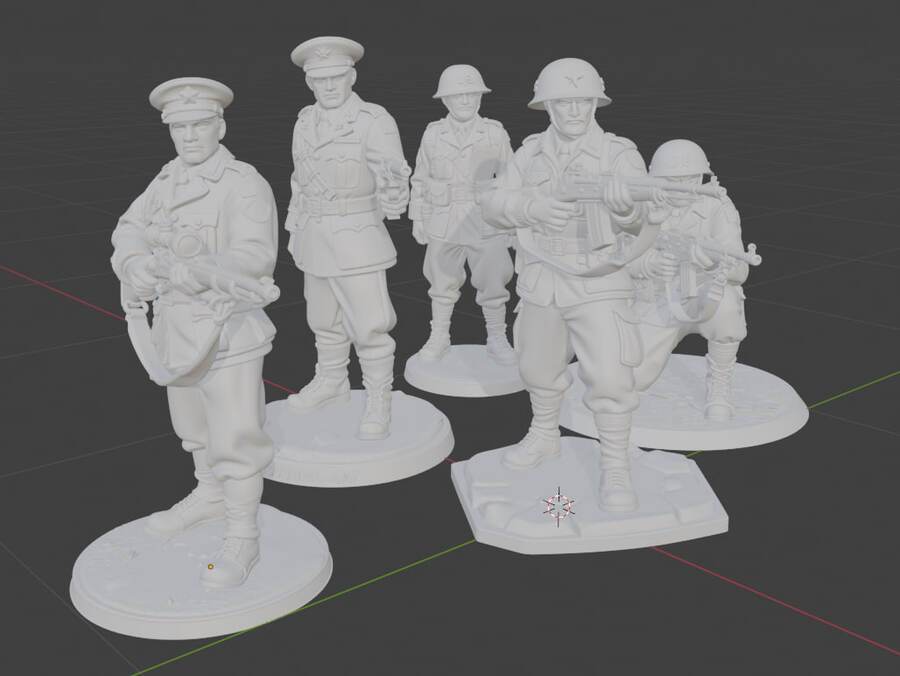 Работы выполнены в сеттинге второй мировой войны и посвящены армии США. Каждая миниатюра — солдат, выполняющий какую-либо роль: Офицер, Снайпер, Картограф и 2 стрелка.