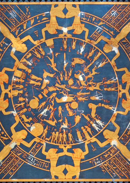 Дендерский зодиак — рельефное изображение звёздного неба с созвездиями зодиакального круга. Птолемеевский период, ок. 50 г. до н. э. (храм богини Хатхор в Дендерах, Египет; в настоящее время экспонируе