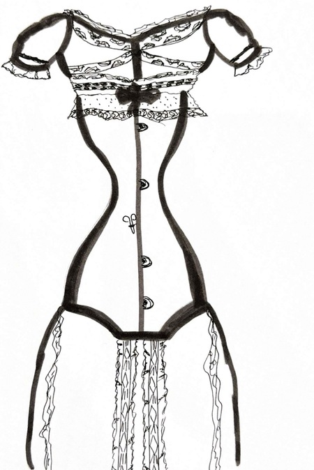 1-й блок направлен на изучение и прорисовку костюма или предмета костюма по КП в различных графических приемах, стилях, идеях