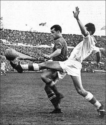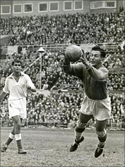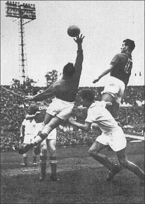 Никола Радович прерывает навес у ворот сборной Югославии, 1956