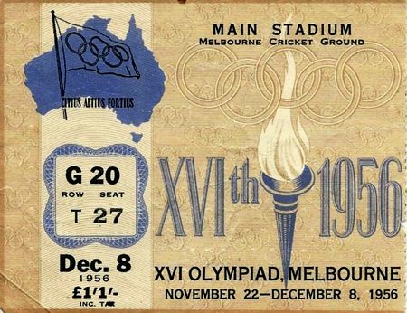 1-Билет на матч. 2-Капитан сборной СССР Игорь Нетто на «золотом» пьедестале Мельбурна 1956.