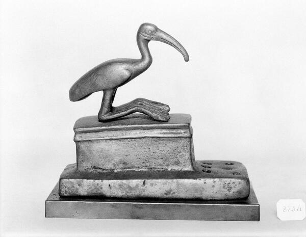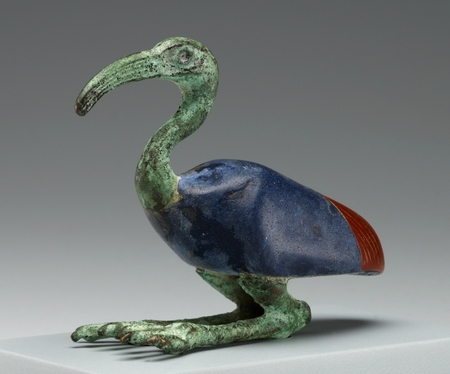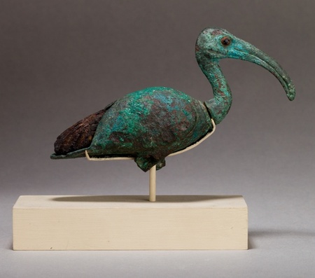 Птица ибис — аватара Тота, мудрейшего божества, покровителя библиотек и писцов, который также следил за справедливостью в загробном мире. Две вышепредставленные статуэтки — зооморфные образы обожествленного правителя. Характерная особенность статуэток этого периода — статичные позы, соблюдение человеческих пропорций.