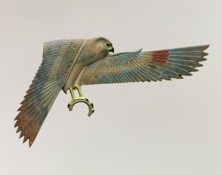 Древнегипетские боги были синкретическими существами, поэтому сокол является олицетворением сразу нескольких божеств. Самый известный из них — бог Гор (Хор), покровитель солнца и неба, который обладает всевидящим оком, отгоняющим от человека зло. Именно поэтому его образ часто использовался для изготовления талисманов и амулетов.