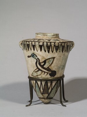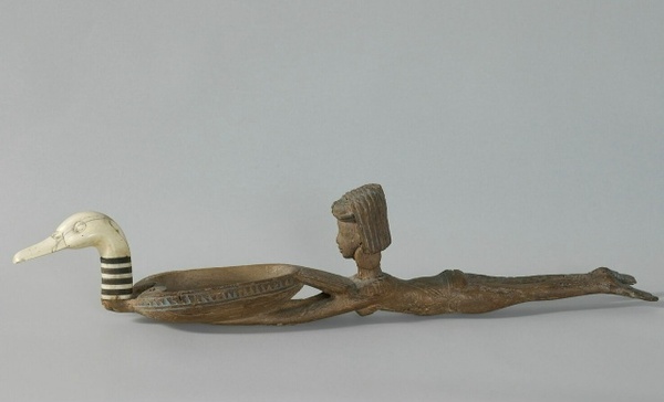 Косметическая ложечка в виде плывущей девушки. ок. 1390 — 1330 гг. до н. э. / Сосуд с конусовидным туловом и двумя маленькими ручками, с изображением утки и фризов из лепестков лотоса, ок. 1351–1334 гг
