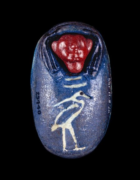 Цапля, сидящая на клетке с утками и надсмотрщиком из гробницы наследнего принца Ка-Уаба. 2579-2556 гг. до н. э. / Древнеегипетский амулет скарабей в виде сердца со священной птицей Бену.