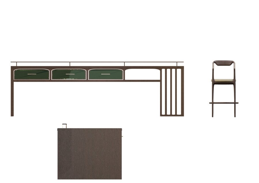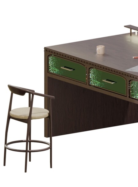 На клаузуре представлена рабочая зона в кабинете арт-практики. - Высокий стол позволяет удобно проводить работу над макетами, чертежами стоя. - Барные стулья с удобной спинкой для прослушивания лекций, перерыва и работы с компьютером. - Уютные и светлые помещения. - Место для показа творчества.
