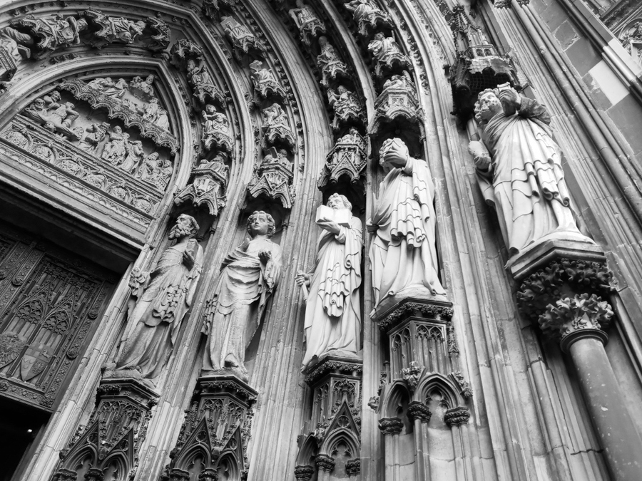 Какие самые значимые детали архитектуры Кёльнского собора и в чем их символизм? Что хранят в себе элементы его экстерьера? Кто изображен на многочисленных статуях в различных порталах собора? Почему архитектура собора вызывает глубокое восхищение у людей со всего мира? Именно эти вопросы легли в основу моего визуального исследования.