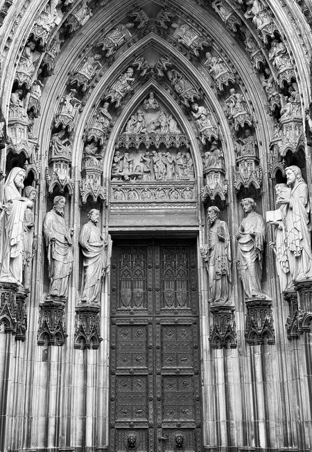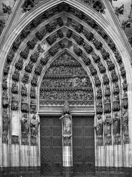 Западный фасад Кельнского собора имеет три портала, а именно Центральный портал, портал Святого Петра и портал Трех Королей.