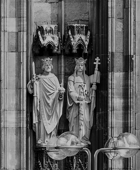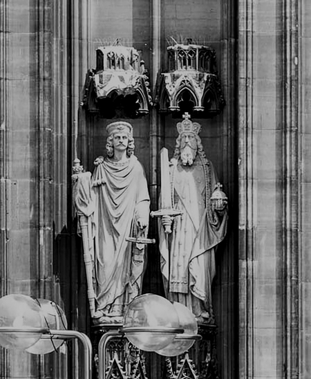 Справа от портала расположены Генрих II, император Священной Римской империи, и Святой Стефан Венгерский, великий князь венгров и первый король Венгрии.