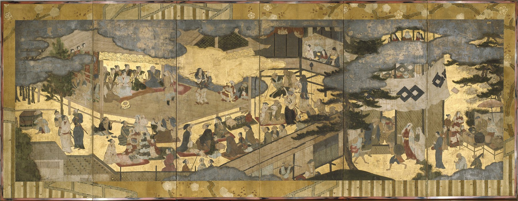 Изображение труппы театра кабуки под управлением Идзумо Окуни. (предположительно 1603 г.)