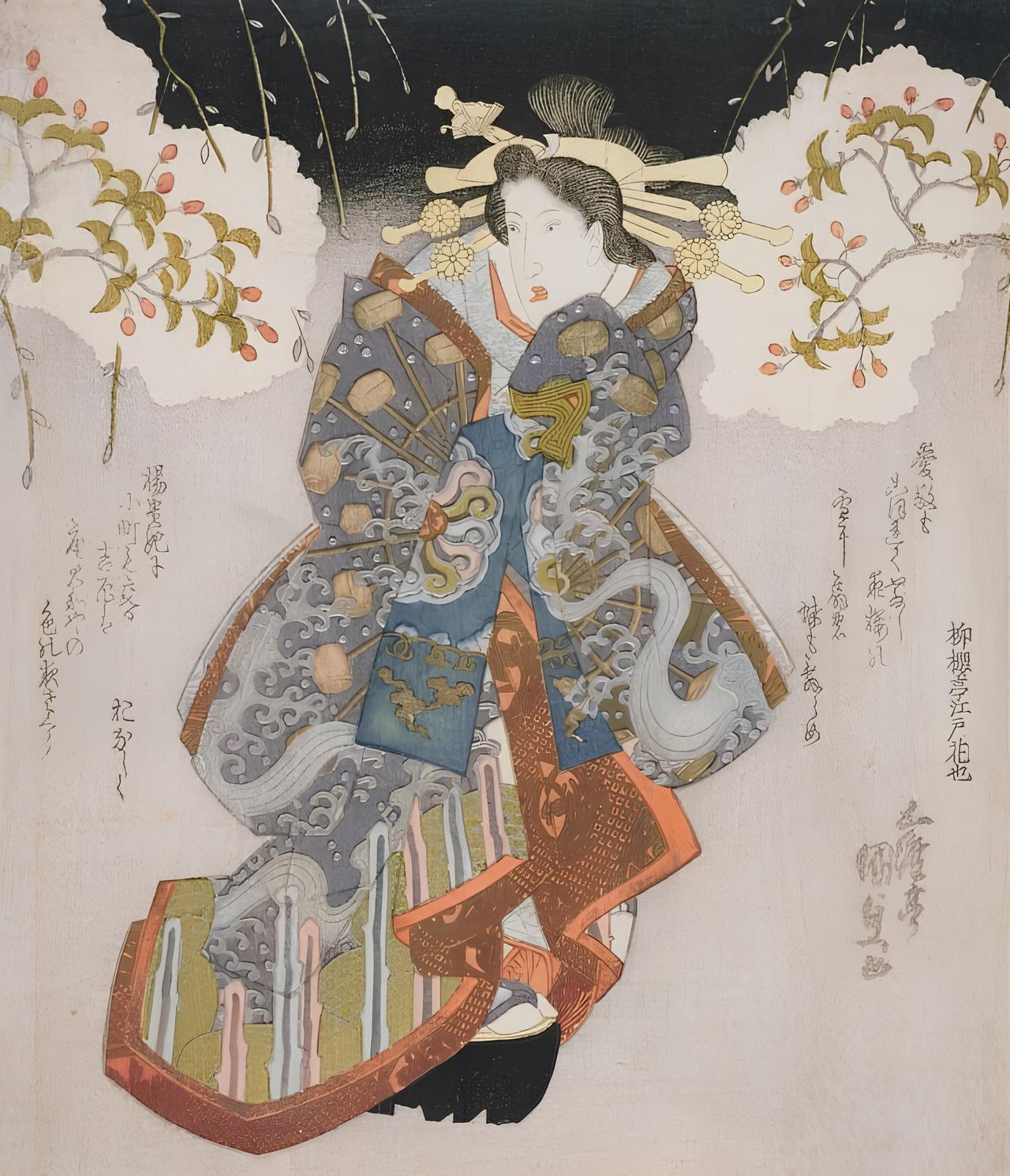 Изображение оннагата, «Актер театра кабуки Ивай Кумэсабуро II в образе куртизанки», ок. 1827 года