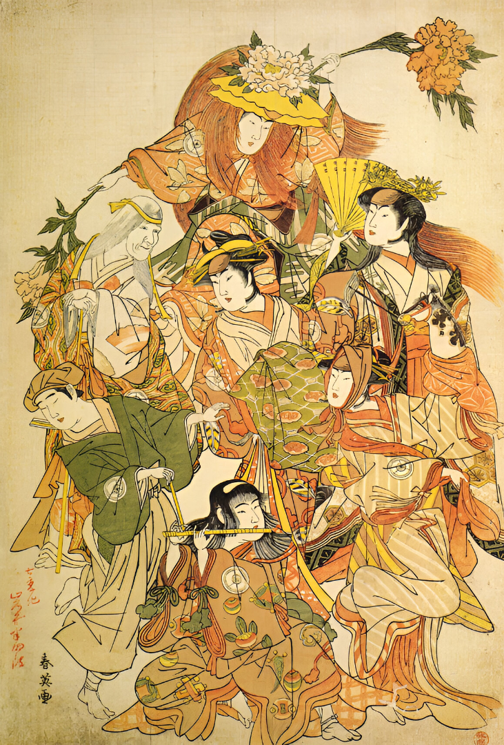 Актеры кабуки в фурисодэ. Кацукава Сюнъэй, актер Иваи Ханширо IV, «Танец семи превращений», 1793–1794 гг.