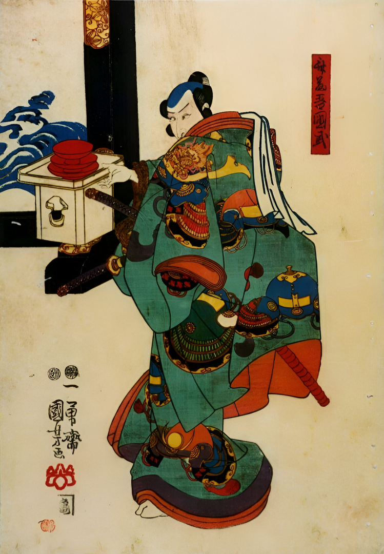 Интересно, что у актеров кабуки была забавная традиция. После удачных выступлений они отпечатывали свой грим на кусках хлопка, шелка или бумаги.