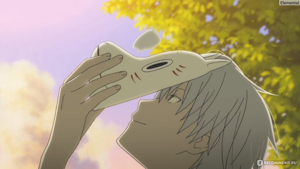 Персонаж из аниме «В лес, где мерцают светлячки» буквально носит маску, как актеры кабуки, которые используют для этого грим