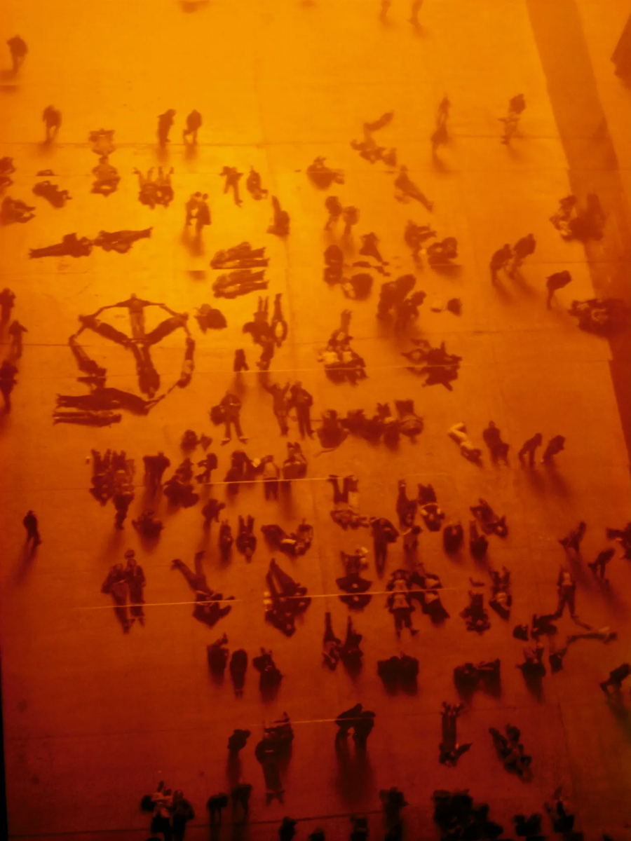 Элиассон превращает музей в огромную атмосферу: туман, оранжевый свет, зеркальный потолок. Люди ложатся на пол, фотографируются, общаются. Работа существует только здесь — никакой перенос невозможен.