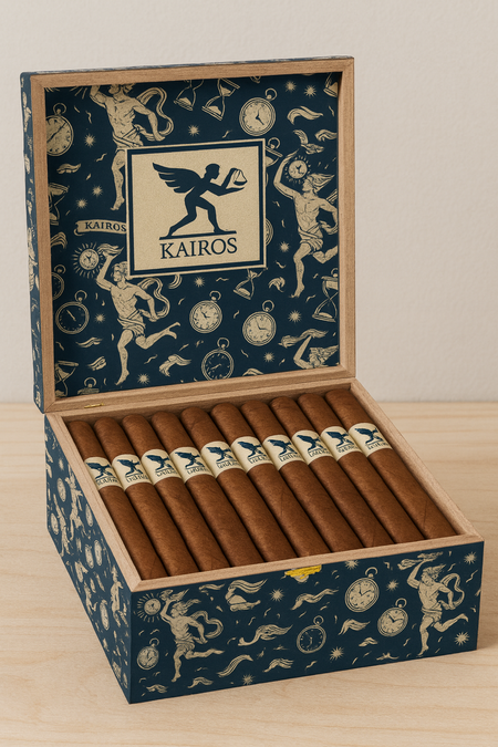 Microsoft Copilot: a box of cigars with logo and pattern.
