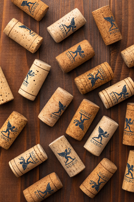 a group of wine corks top view, soft light.