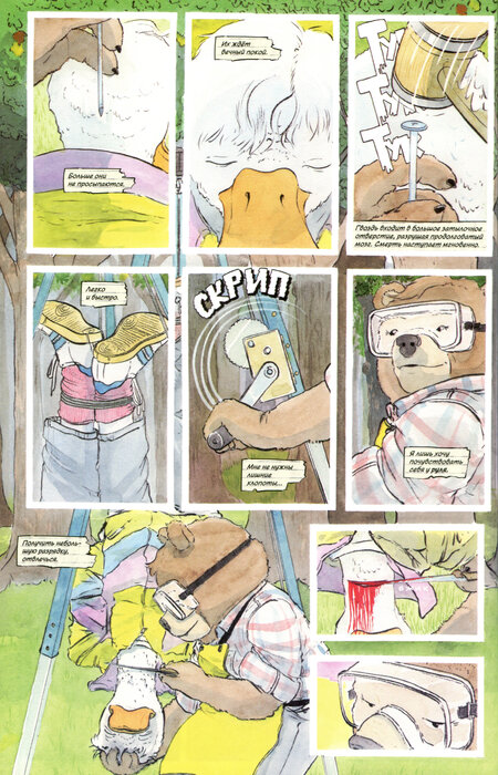 Однако, дальнейшее содержание комикса может показаться слишком жестоким для неподготовленных читателей. Главная героиня — хорошенькая медведица Сэм, оказывается хладнокровным серийным убийцей.