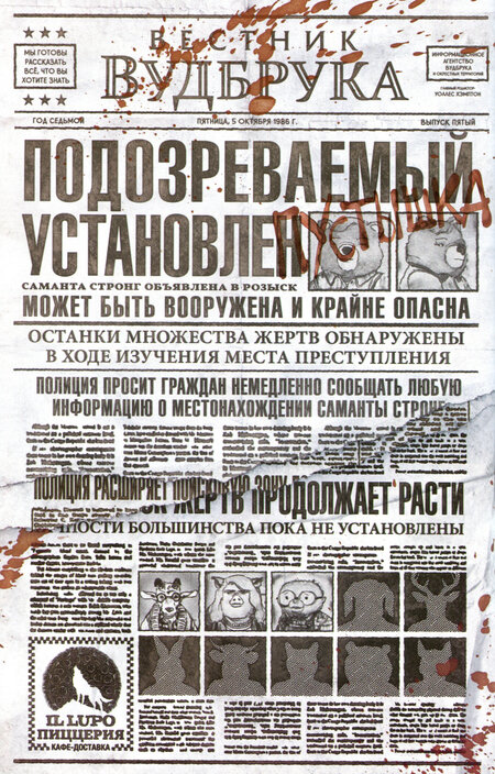 Интересный факт: чем ближе комикс к зщавершению, а Сэм к раскрытию тайны, тем больше кровавых разводов появляется на страницах «Вестника Вудбрука».