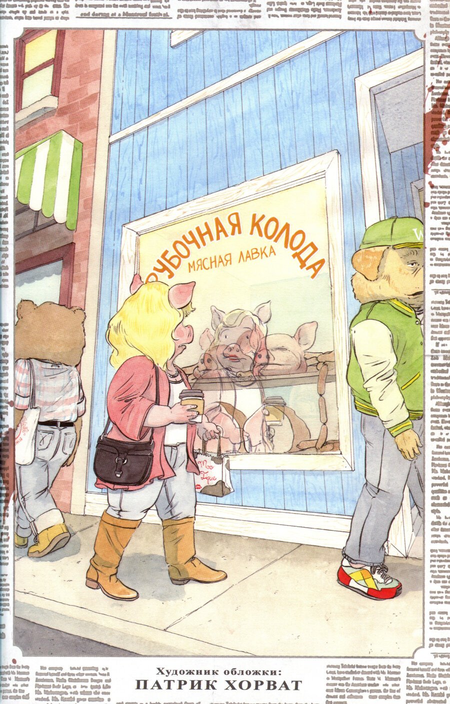 Обложки — отдельный вид искусства. Каждая из них обычно показывает центрального персонажа главы, а иногда даже на что-то намекает. Например, на обложке второй главы изображена Черри — свинка, которая как-то странно смотрит на свиные головы на прилавке мясного магазина. В этой главе ее убьют.