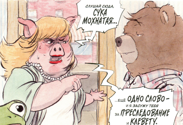 При этом даже в самых страшных сценах герои остаются такими же милыми, с округлыми формами и пушистой шерсткой. Как будто бы какой-то злой взрослый испортил обычную детскую книжку.