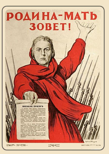 В военные и послевоенные годы женский образ в официальном искусстве значительно меняется. На первый план выходит мать, символ жертвенности и продолжения жизни. Культовой стала аллегория «Родина-мать» — женская фигура с мечом или призывающая рукой.