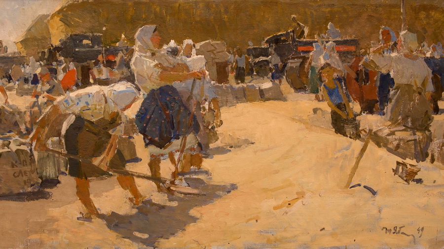 1. Владимир Пластов. «Весна», 1954 г. 2. Юрий Пименов. «Новая Москва», 1937 г.