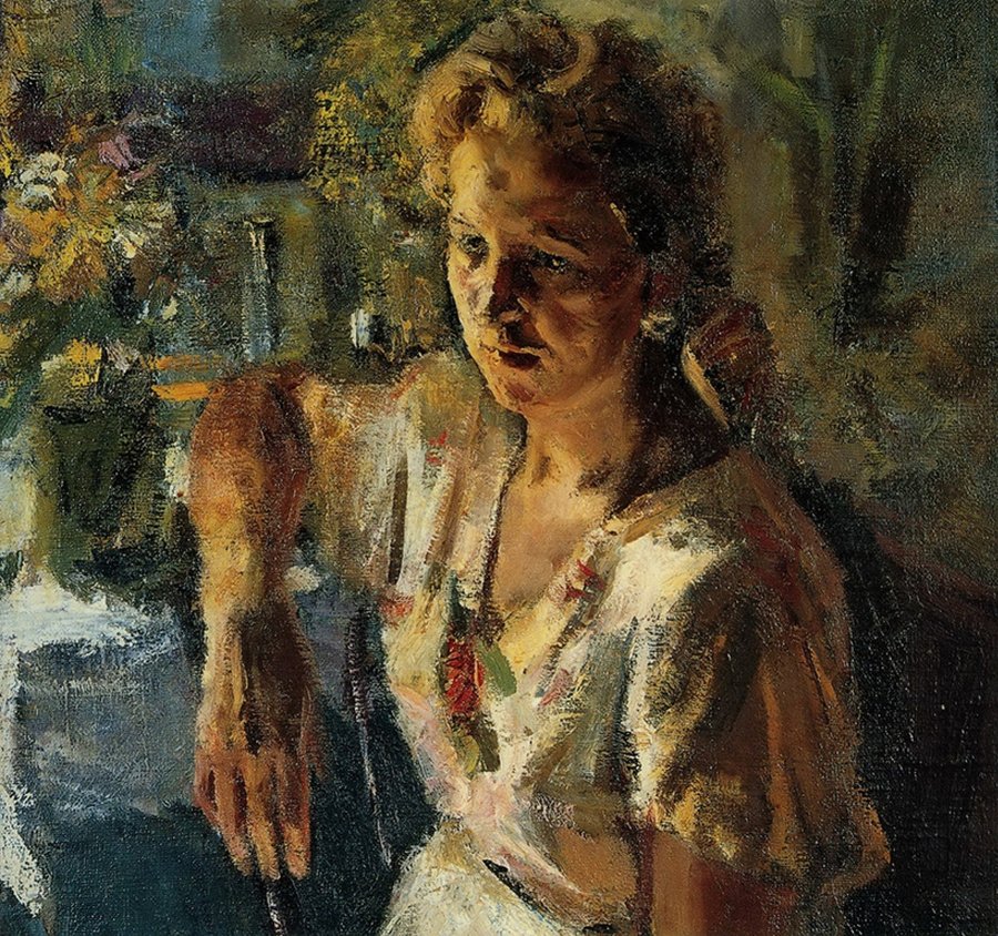 Парадные портреты того времени подчёркивали простое достоинство модели, иногда добавляли детали уюта. Телесность же оставалась под запретом — никакой откровенной чувственности: сталинская эпоха наложила табу на изображение женского тела и страсти, эротика вытеснялась предметами труда.