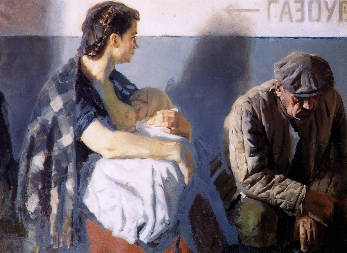 В 1970-е даже в рамках Союза художников многие живописцы устали от былого пафоса. На полотнах появляются сцены из повседневной частной жизни: женщина на кухне, в очереди, в электричке. Это было ново — показать не подвиг, а обычный день советской женщины. Художницы того времени писали подруг за беседой, женщин на рынке — мягкие, атмосферные сцены. Их героини уже не ударницы с напряженными лицами, а живые люди с эмоциями, иногда с тоской или мечтами.