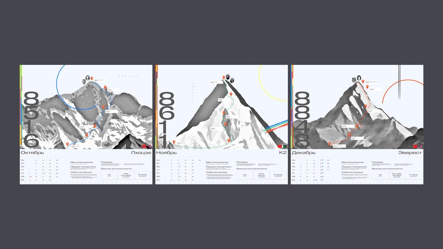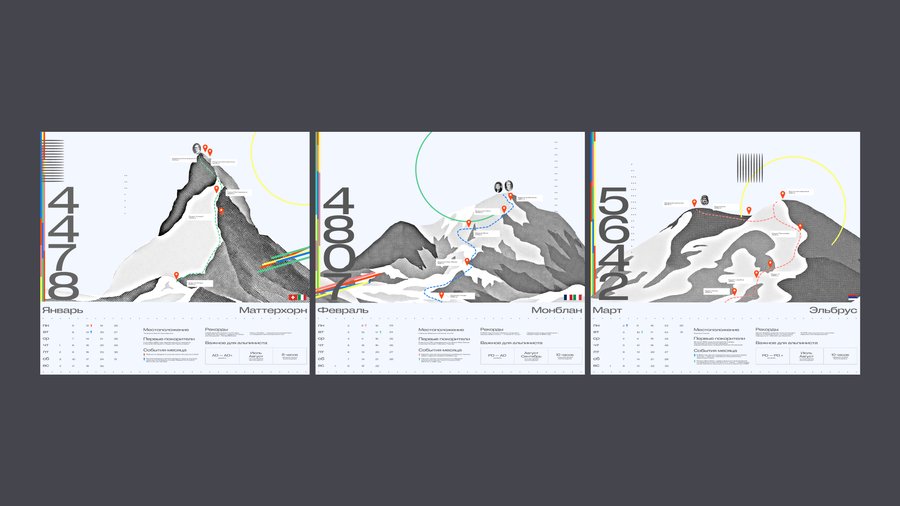 Календарь демонстрирует особенности двенадцати величайших пиков мира и увековечивает историю альпинизма