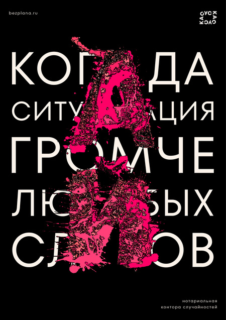 03 Третья серия плакатов — это рекламные островки подкаста нотариальной конторы случайностей о том, как жить среди хаоса и случайностей. Каждая буква — это отдельный взгляд на случайности.