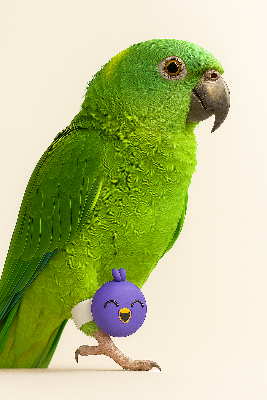 Модель: ChatGPT Промпты: Для генерации этих изображений была использована генерация трекеров выше 1. Generate an image of a dog wearing one of these trackers on its collar, against a milky background. 2. Generate a parrot with the purple one tracker on its leg. 3. Generate an image of a cat wearing the black one tracker on its collar, against a milky background.