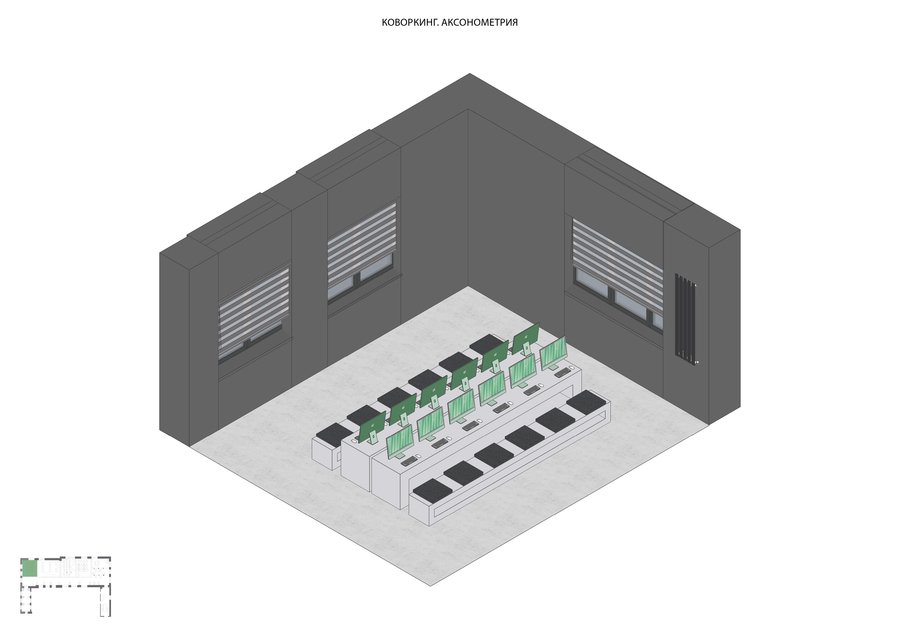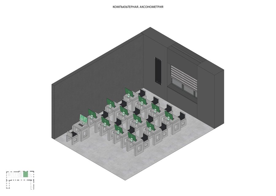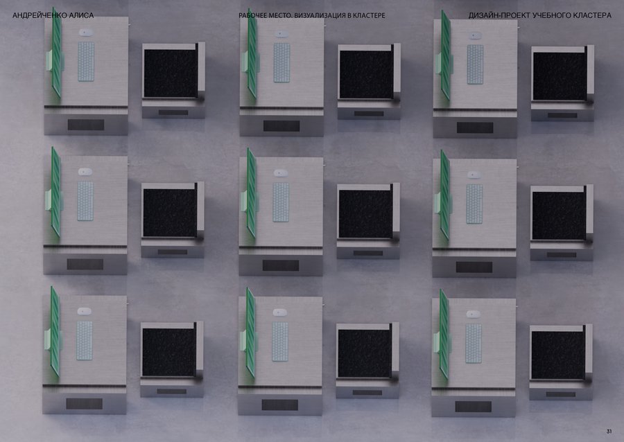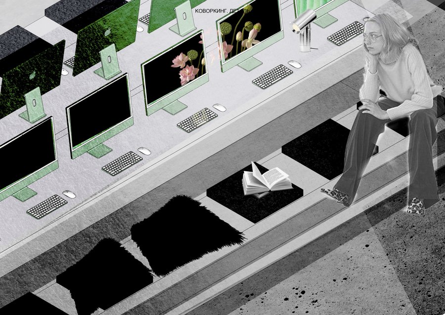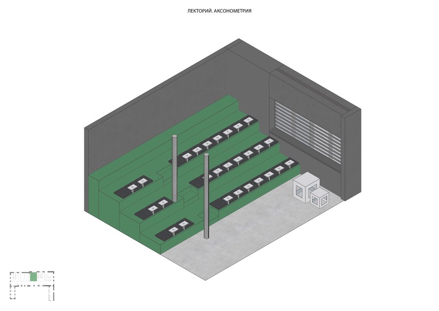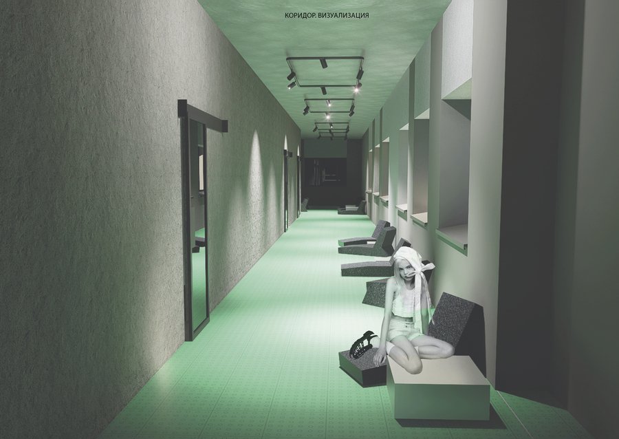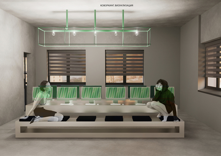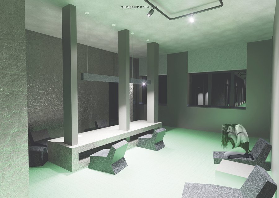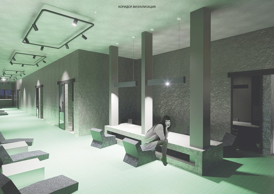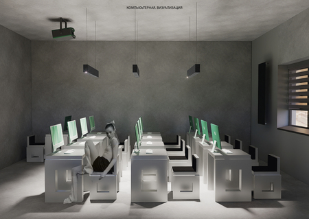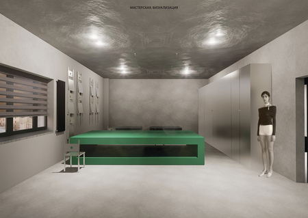 проект является дизайном интерьера для учебного кластера. концепция интерьера основана на создании чистого, незавершенного пространства, которое воспринимается, как открытая платформа для творчества. акцентом проекта является зеленый цвет.