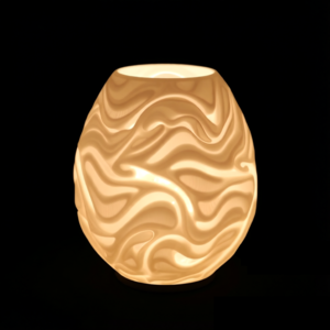 Объект: декоративный светильник/абажур с объёмным волнообразным узором. Назначение: элемент интерьерного освещения, арт-объект для жилых помещений (спальня, гостиная), прикроватная лампа. Форма и геометрия: округлая, слегка приплюснутая форма, напоминающая вазу или шар; выраженный рельеф в виде плавных волнообразных линий, равномерно покрывающих всю поверхность; открытое верхнее отверстие для размещения источника света; дизайн предусматривает полупрозрачность для создания мягких световых эффектов и декоративных теней на стенах. Технология печати: SLA/DLP (стереолитография, печать смолой) либо FDM с последующей заливкой прозрачной смолой для достижения эффекта матового стекла. Целевой внешний вид: матовый полупрозрачный абажур тёплого молочного оттенка, создающий мягкое рассеянное свечение. 2. Спецификация размеров модели (Габариты X × Y × Z) Общая высота (Z): 180–220 мм; Максимальный диаметр в нижней части (X): 160–180 мм; Максимальный диаметр в верхней части (Y): 140–160 мм; Толщина стенок: 2–3 мм (обеспечить достаточную прочность при сохранении лёгкости конструкции); Глубина волнообразного рельефа: 5–10 мм (для выразительного светового эффекта). 3. Требования к материалу Для SLA/DLP: фотополимерная смола с матовой полупрозрачной поверхностью (например, Matte Transparent Resin или аналоги). Желаемый оттенок — молочный, слегка кремовый. Для FDM: PLA/PETG с последующей заливкой матовой прозрачной эпоксидной смолой. Цвет PLA/PETG — белый или светло-молочный. Требования к материалу: высокая светопроницаемость с эффектом рассеивания; устойчивость к нагреву от светодиодов (до 60 °C); гладкая поверхность без видимых слоёв печати (особенно на рельефных участках); отсутствие запаха после печати и пост-обработки; достаточная ударопрочность для предотвращения сколов на рельефе. 4. Параметры печати Ориентация модели на столе: вертикально (дном на стол, ось Z вдоль центральной оси абажура). Разрешение печати (для SLA/DLP): 50–100 мкм для детализации волнообразного рельефа. Высота слоя (для FDM): 0,1–0,15 мм. Толщина стенки: 3–5 периметров (толщина ~2–3 мм) для обеспечения прочности. Заполнение (Infill): 10–20% (сетчатый или шестиугольный узор) — для лёгкости конструкции. Шов (Z-Seam): скрыть на внутренних поверхностях или в незаметных зонах между волнами рельефа.