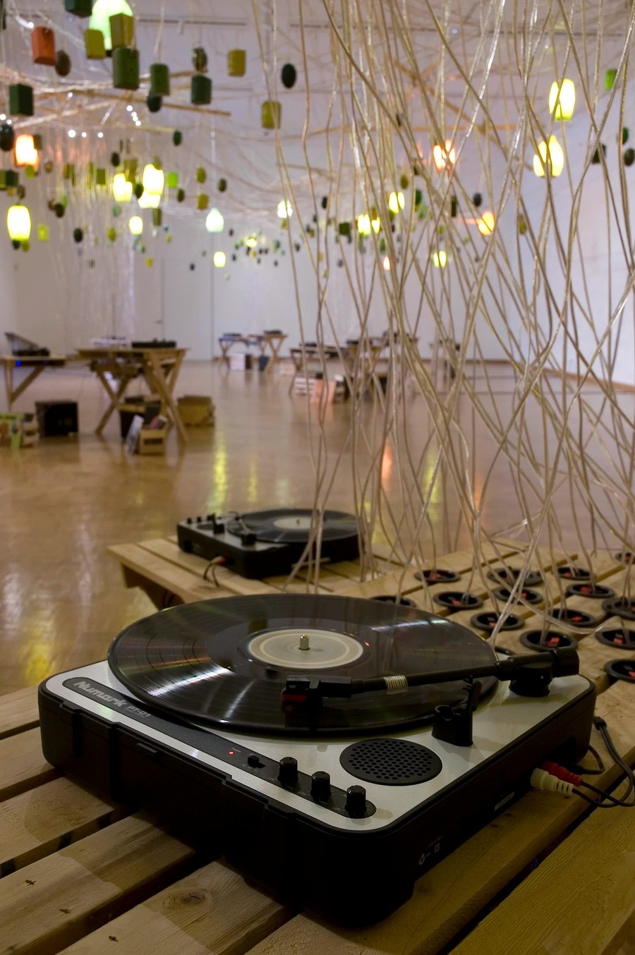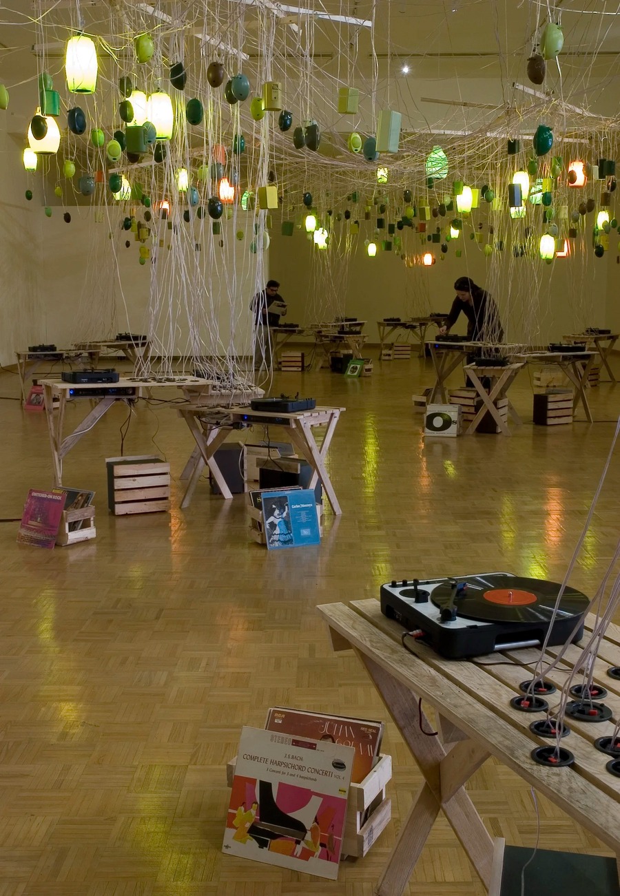 Инсталляция, в которой в одном помещении стоят 8 виниловых проигрывателей, к которым посетители могут подходить и ставить пластинки. Одновременно звучат разные треки, создавая хаотическое многослойное пространство.