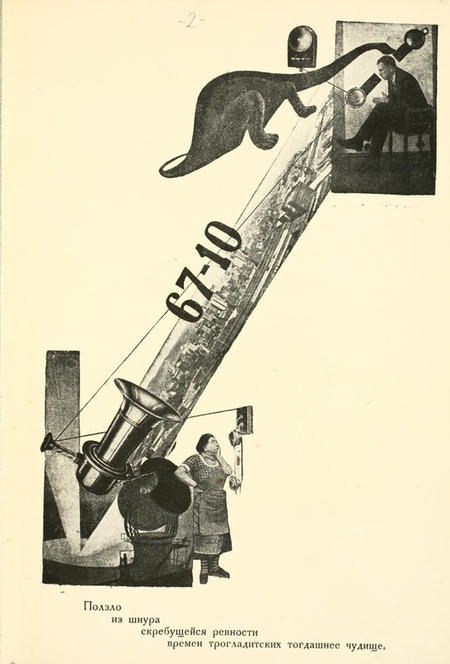 Родченко для оформления всей книги создал серию фотомонтажей и коллажей, где сочетание фотофрагментов, бытовых предметов, городских ландшафтов и портретов героев превращено в декорацию к тексту — визуальную поэзию, дополняющую интонации Маяковского. Использование реальных фотографий, газетных вырезок, известных лиц и городских деталей придаёт повествованию конкретику современности и усиливает ощущение документальности. Мне показалось интересным, как Родченко связывает линии прочтения: изображения на страницах больше, чем иллюстрация — они начинают работать как личный дневник или хроника, показывая чувственные и психологические состояния героев.