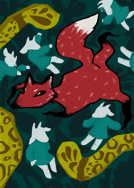 Русские народные сказки наполнены волшебными героями и небывалыми происшествиями, однако так или иначе через их сюжеты красной нитью проходит тема семьи. Будь то основные персонажи или второстепенные, семейные уклады всегда колоритны и разнообразны. Именно это многообразие я стремилась передать в своей графической серии. Мною были выбраны три сказки: «Лисичка со скалочкой», «Волк и семеро козлят», «Арысь-поле». В каждой из этих историй представлено народное понимание семейных уз, уникальное и глубоко значимое.