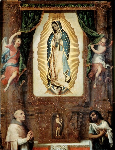 «Алтарный образ Богоматери Гваделупской со Св. Иоанном Крестителем, фра Хуаном де Сума» / Мигель Кабрера / ок. 1760.; «Донья Мария де ла Лус Падилья и Гомес де Сервантес» / Мигель Кабрера / ок. 1760.
