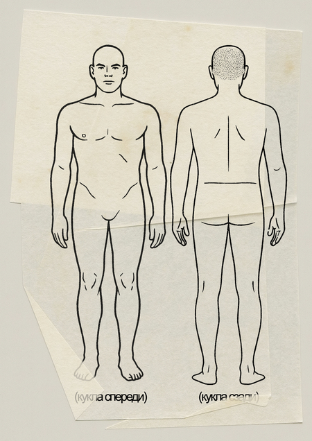 Также для визуальной части исследования я собираю портрет мужчины так, как собираются бумажные куклы из детства — через одежду, аксессуары, прически, которые можно накладывать друг на друга. Мужчина здесь ― «прилагается»: к пространству, к женщине, к своему времени. Это набор повторяющихся атрибутов, из которых и складывается культурный код русского мужчины у «Ленинграда».