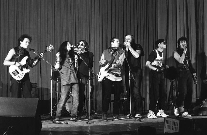 Фотограф Игорь Мухин, Борис Гребенщиков* (Борис Гребенщиков включён Министерством юстиции Российской Федерации в реестр иностранных агентов) и группа «Аквариум», 1986