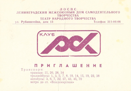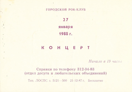 Пригласительный билет в Ленинградский рок-клуб, автор неизвестен, 1988