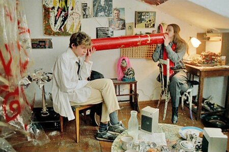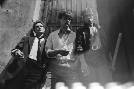 Слева — Свин, Одинокий с подругой, Вилли и товарищ, съёмки «Без мундира», автор неизвестен, 1988. Справа — автор неизвестен, 1980-е