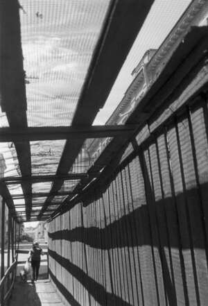 Визуальная практика Сергея Подгоркова представляет собой наиболее «прямолинейный» документализм среди рассматриваемых авторов, но именно эта прямота делает его работы важным основанием для исследования. Подгорков обращается к социальному организму, название которому Ленинград. Его интересуют городские маргиналии: дворы-колодцы, стихийные рынки, очереди, набережные, улицы, суровые и ничем не примечательные углы повседневности. В его кадрах человек не является центром композиции — он включён в городскую ткань, подчинён ей, часто растворён в потоке. Подгорков фиксирует не событие, а состояние среды: её медленность, погружённость в серые полутона, бесконечное движение, которое одновременно кажется стазисом. Он снимает город так, как будто пытается уловить его дыхание — тяжёлое, ритмичное, но при этом живое. Отношения человека и города в его фотографиях — это отношения включённости и растворённости. Человек здесь существует не в оппозиции пространству, а внутри него, как естественный элемент сложного солевого раствора городской жизни.
