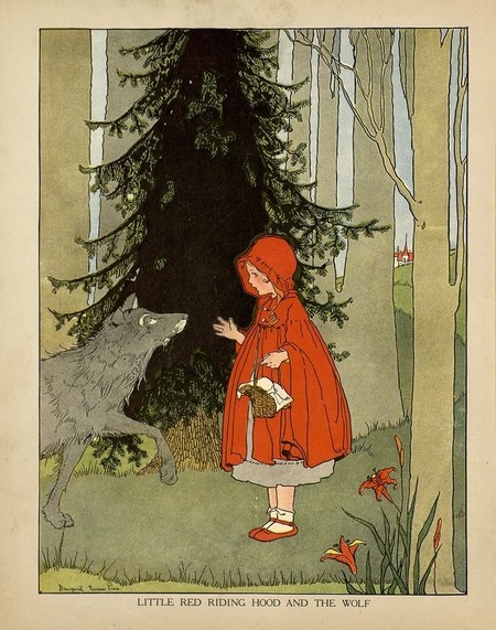 КРАСНАЯ ШАПОЧКА СВЕРНУЛА В ЛЕСНУЮ ЧАЩУ. ИЛЛЮСТРАЦИЯ Б. ДЕХТЕРЕВА