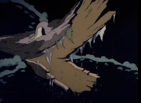 В следующей картине лес скорее является вспомогательным элементом, рождающим события, влияющие на рост героев. Однако он всё еще наполнен яркими образами, усиливающими атмосферу.