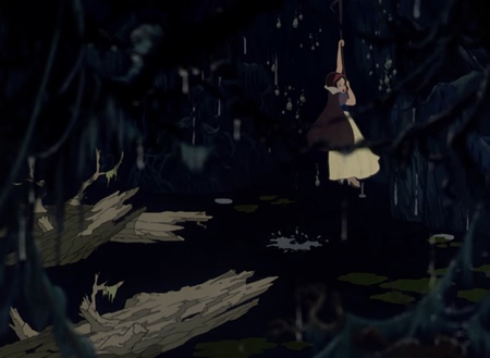 Страх, потрясение и потерянность главной героини отражается в состоянии леса: он оживает в виде волшебного кошмара, не давая Белоснежки покоя.